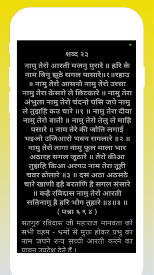 This app is serve as a gift to the followers of Satguru Ravidas ji. It contains hyms and holy book to pay the obeisance to the almighty .