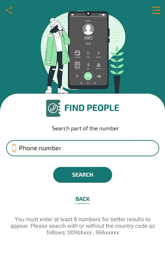 The number book of numbers and names, gives you the opportunity to search for any name, number, or even part of the number in the world, directly through your mobile phone
