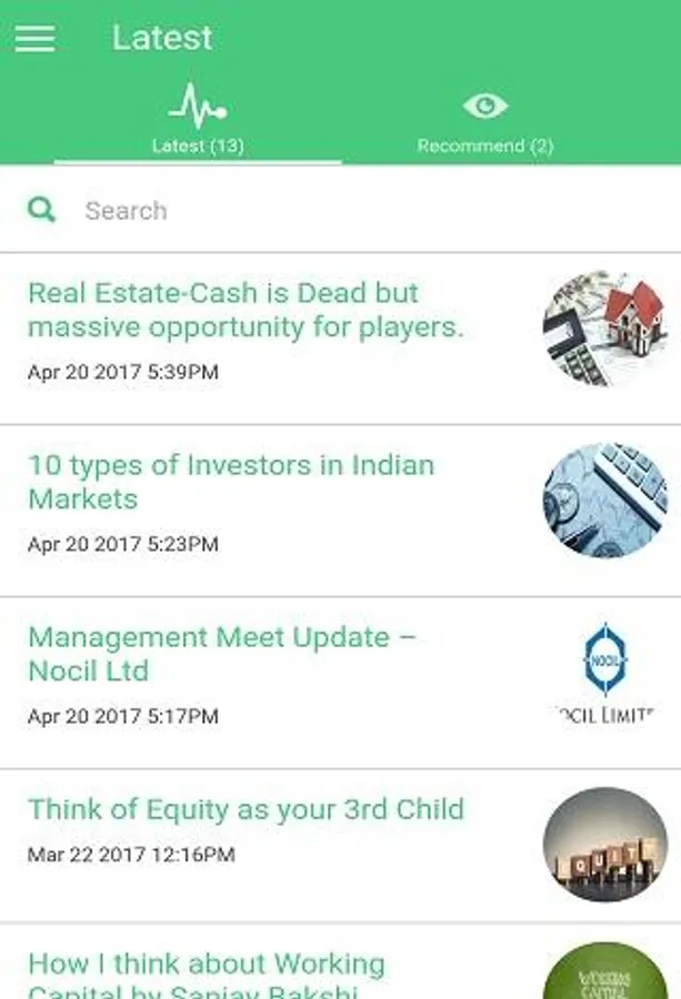 2. News feed in a condensed form for instant updates on stock market and companies