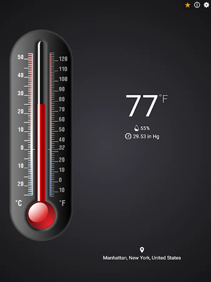 - Switch between Celsius and Fahrenheit degrees with a tap.