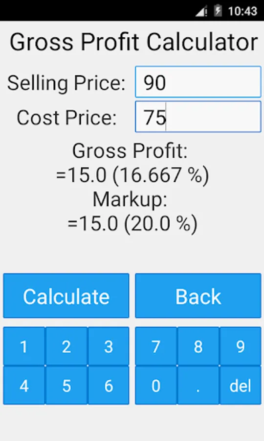 Gross Profit Calculator: You are able to calculate the gross profit (absolute value and percentage) and markup (absolute value and percentage). Just enter the cost price and selling price of the product.