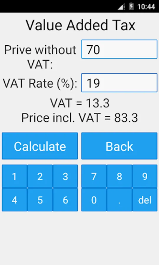 Value Added Tax: You are able to calculate the VAT (value added tax) and the price incl. VAT. Just enter the price without VAT and the VAT rate of your country.