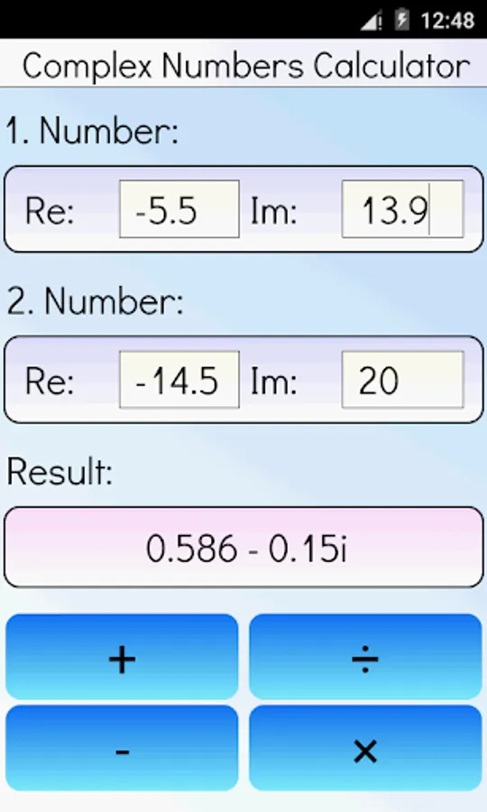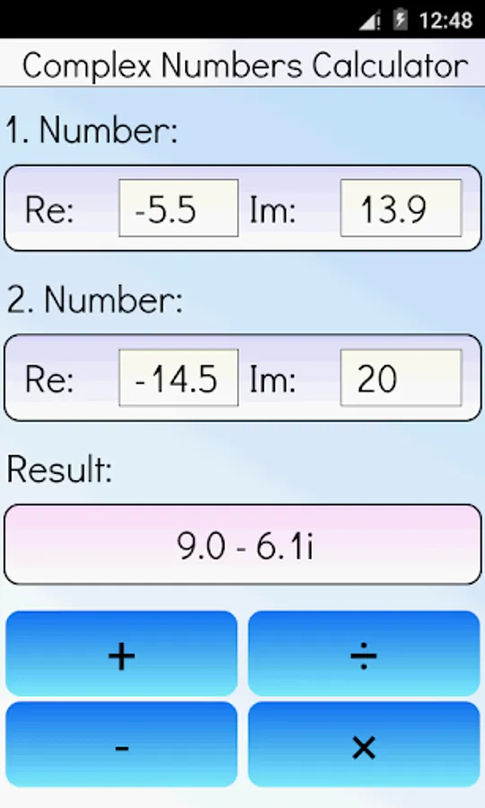 The best math tool for school and college! If you are a student, it will helps you to learn complex number arithmetics.