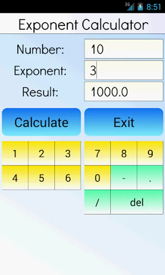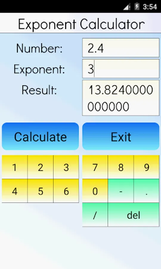 This is a free math calculator, which is an easy way to enter in any number and any exponent and then find the solution. Simply enter in any number and then an exponent and press the calculate button!
