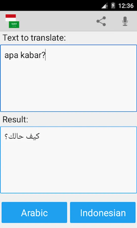This free app is able to translate words and texts from indonesian to arabic, and from arabic to indonesian.