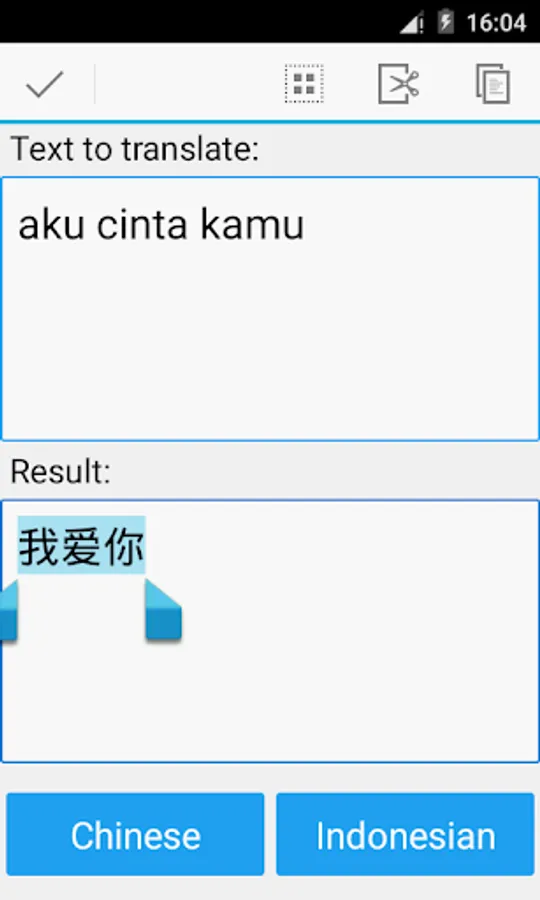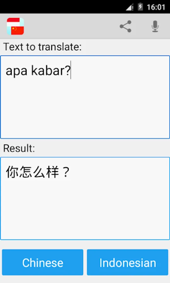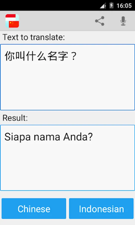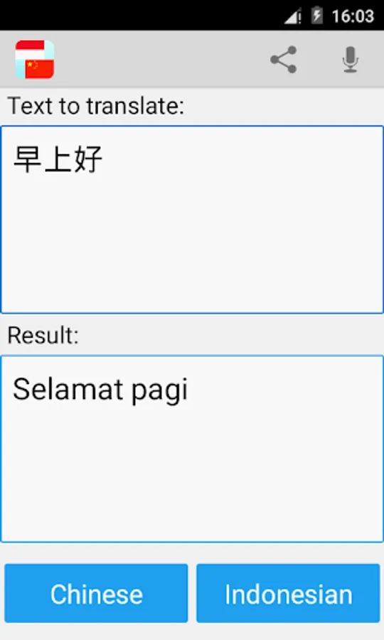 This free app is able to translate words and texts from indonesian to chinese, and from chinese to indonesian.