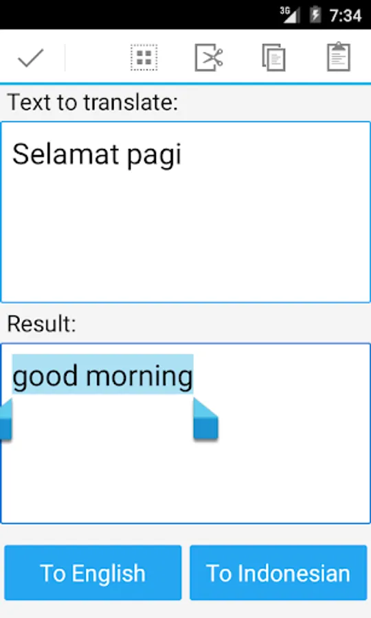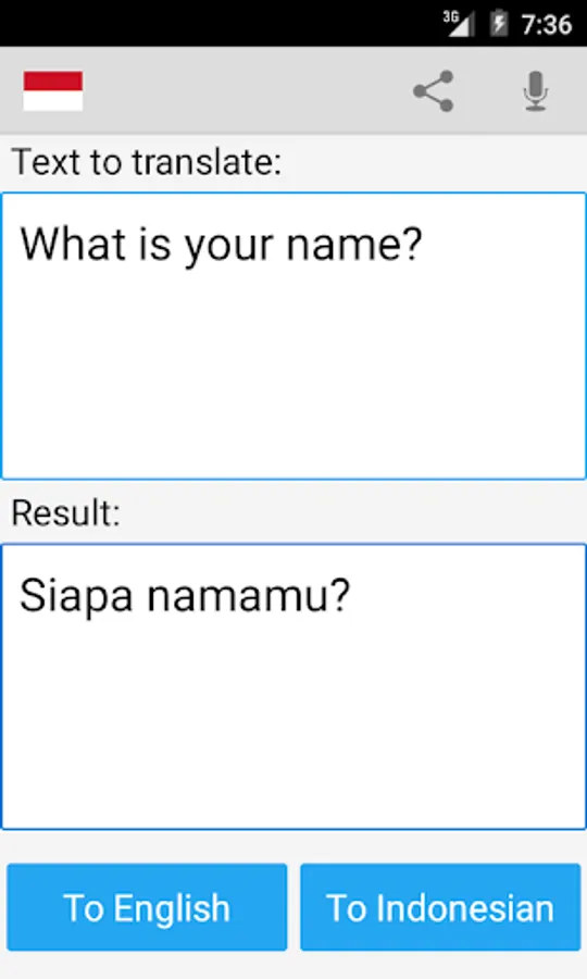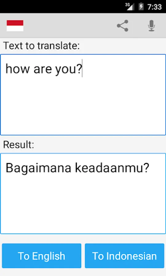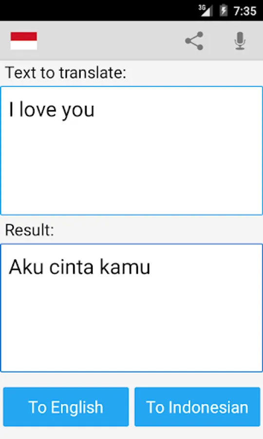 This free app is able to translate words and texts from english to indonesian, and from indonesian to english.