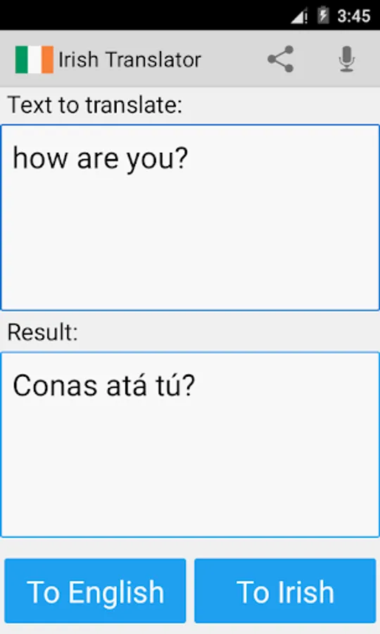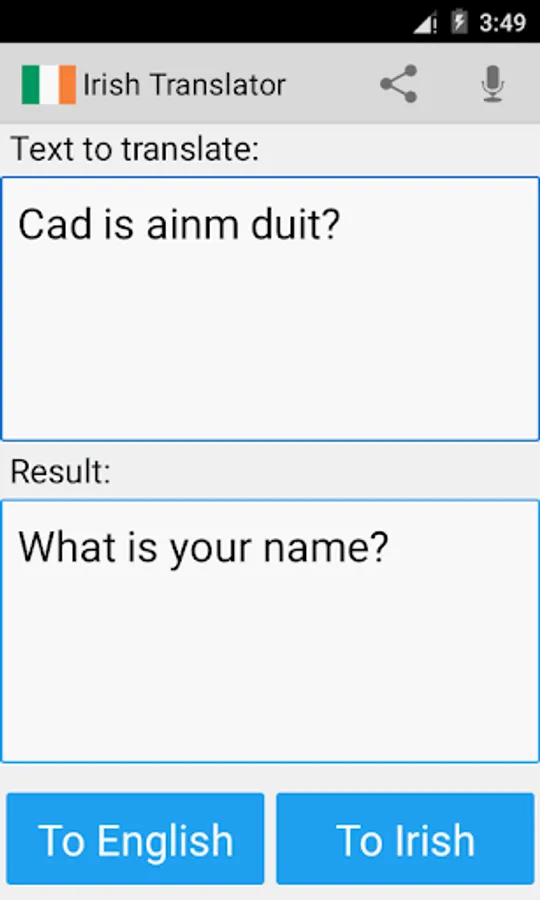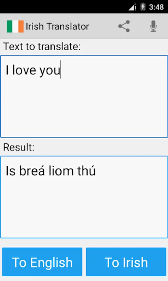 This free app is able to translate words and texts from english to irish, and from irish to english.