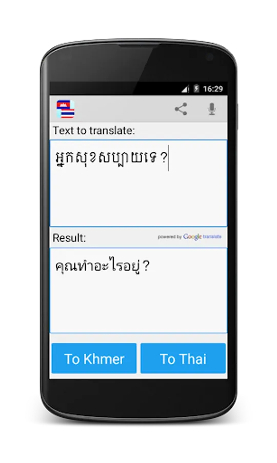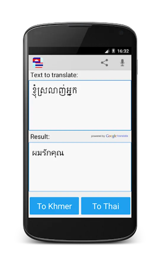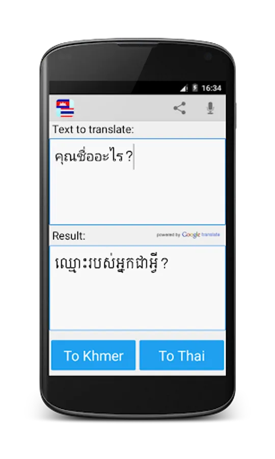 This free app is able to translate words and texts from thai to khmer, and from khmer to thai.