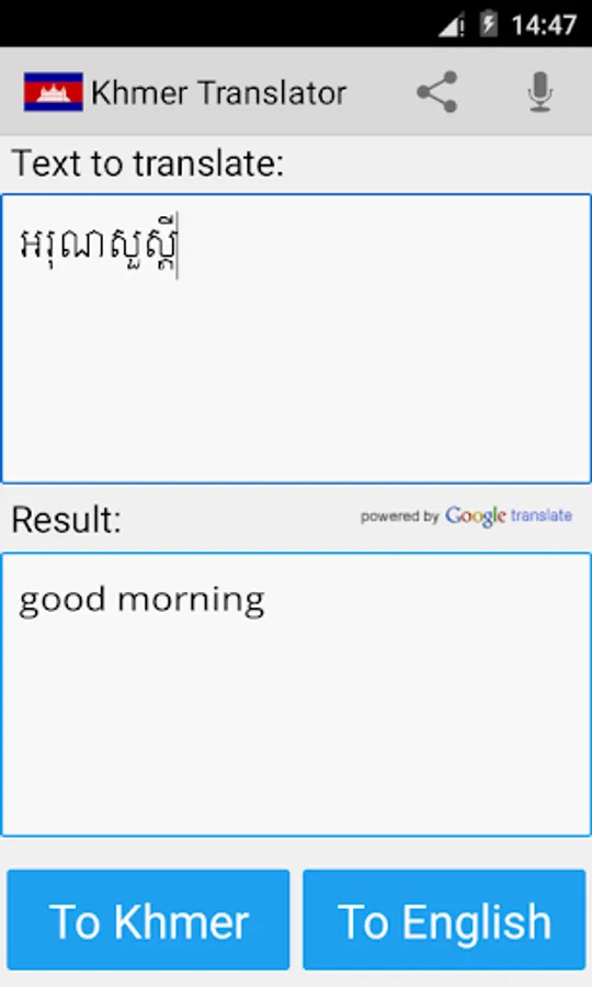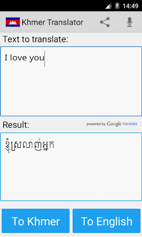 This app is able to translate words and texts from english to khmer, and from khmer to english.