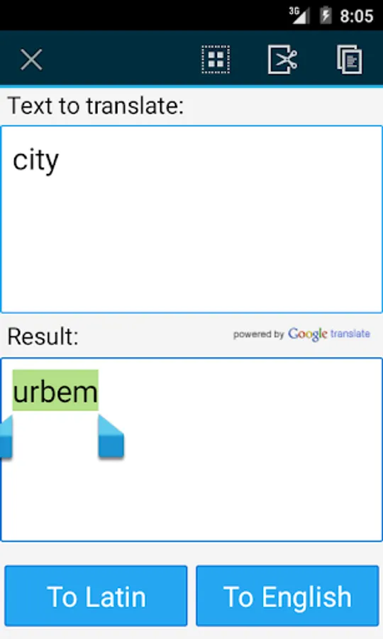This free app is able to translate words and texts from english to latin, and from latin to english.