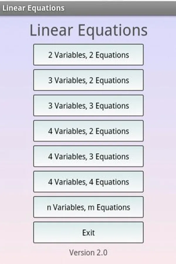 This app is a free math calculator which is able to solve systems of linear equations. You can use two and more variables.