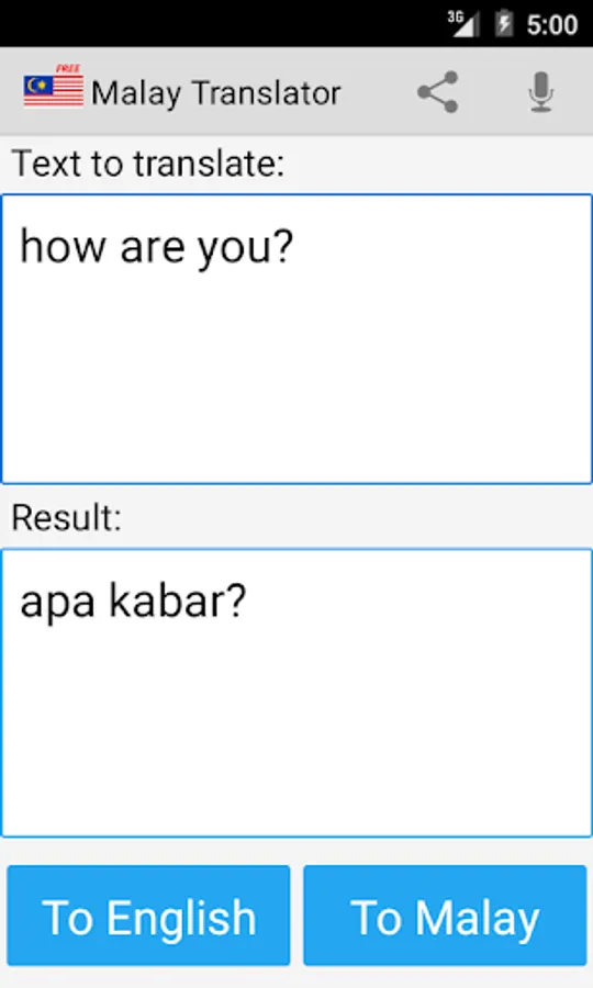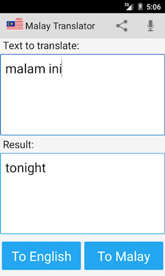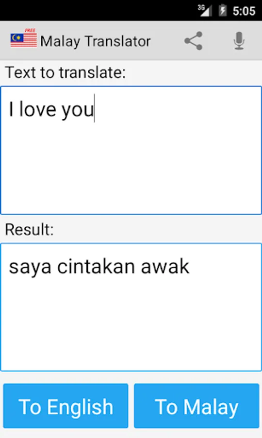 This app is able to translate words and texts from english to malay, and from malay to english.