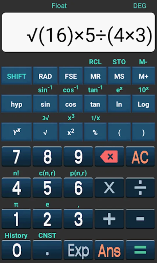 Scientific calculator for math, physics, economics and many more! With most important mathematical functions: