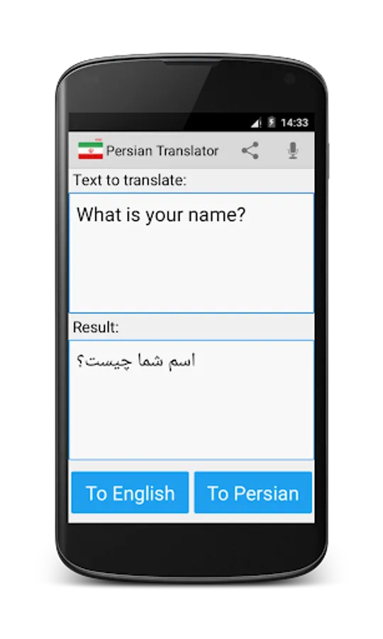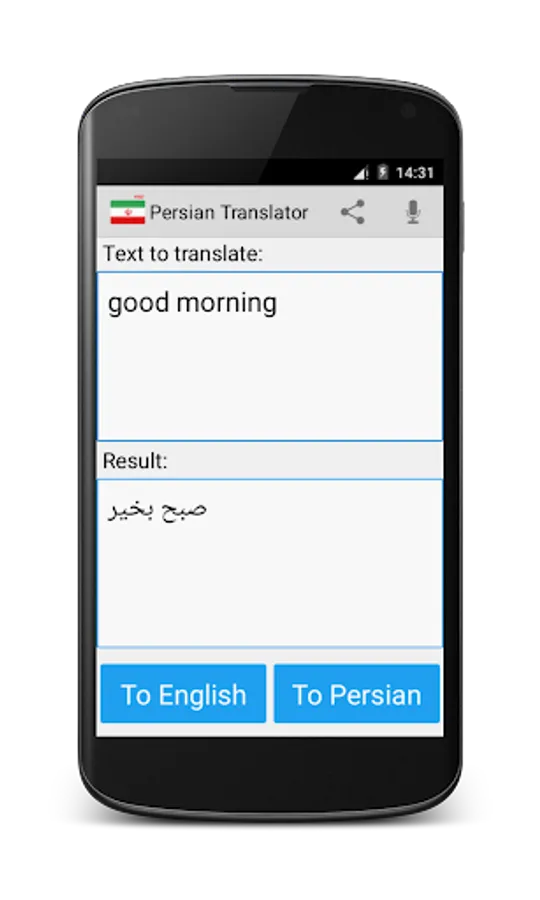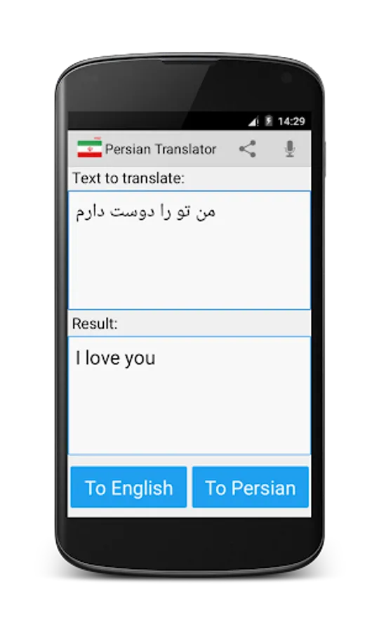 This free app is able to translate words and texts from english to persian, and from persian to english.