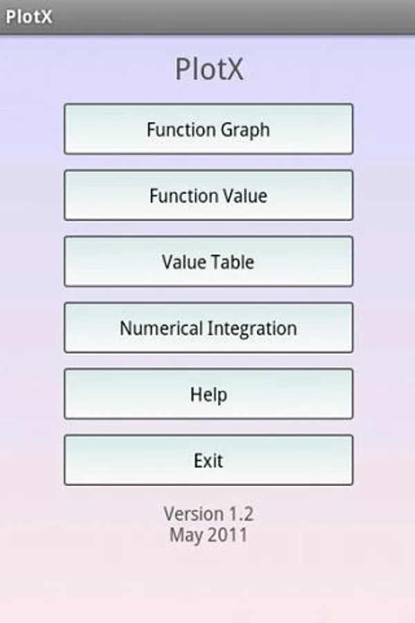 This free app is a function plotter and math calculator. Yor are able to draw multiple function graphs, calculate function values and value tables. You can easy calculate extremal values (minimum and maximum). It is also possible to make a numerical integration.