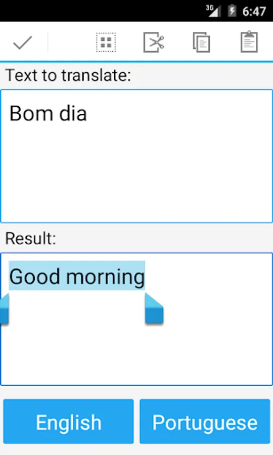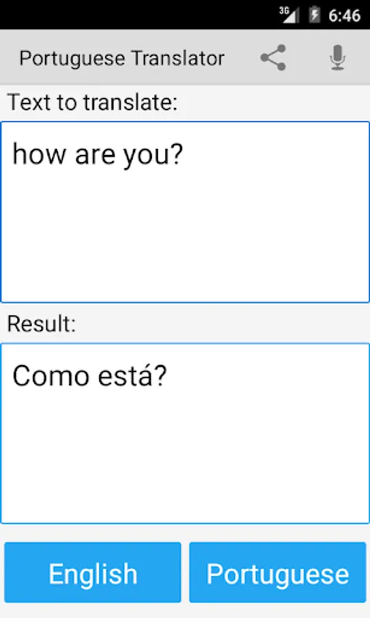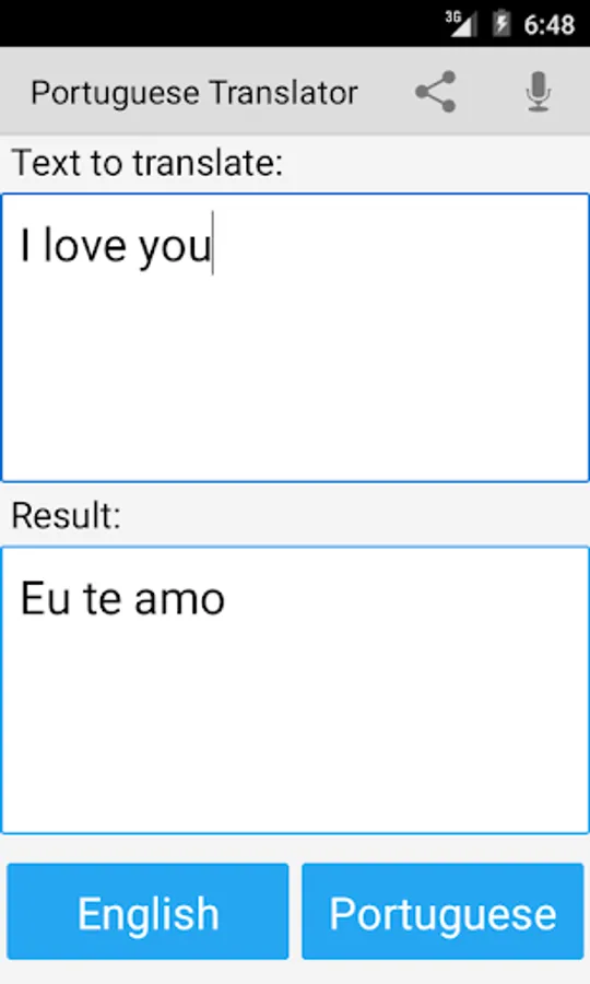 This app is able to translate words and texts from english to portuguese, and from portuguese to english.