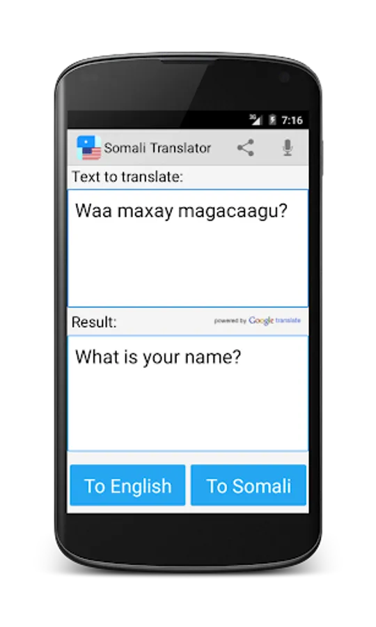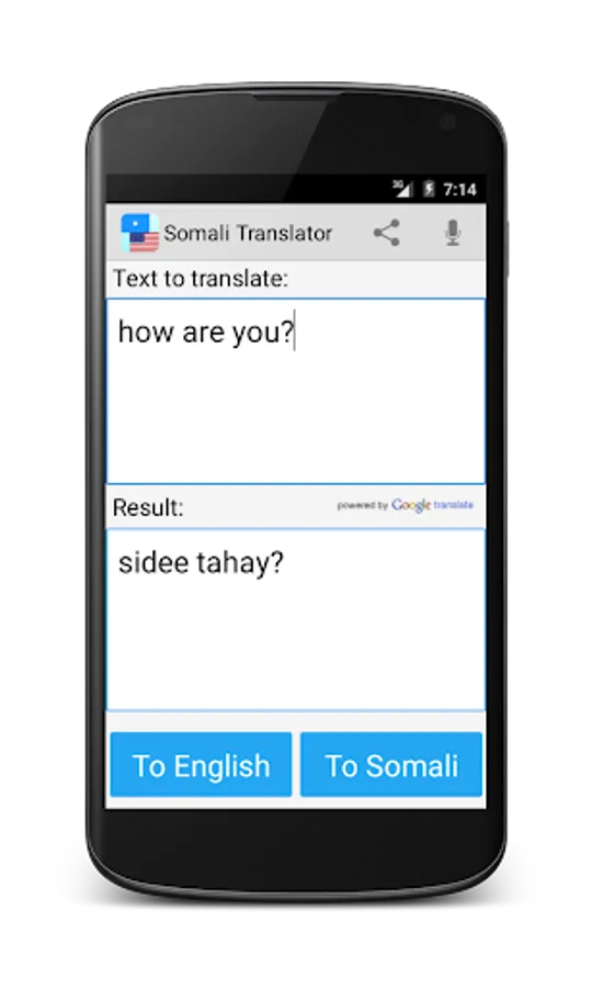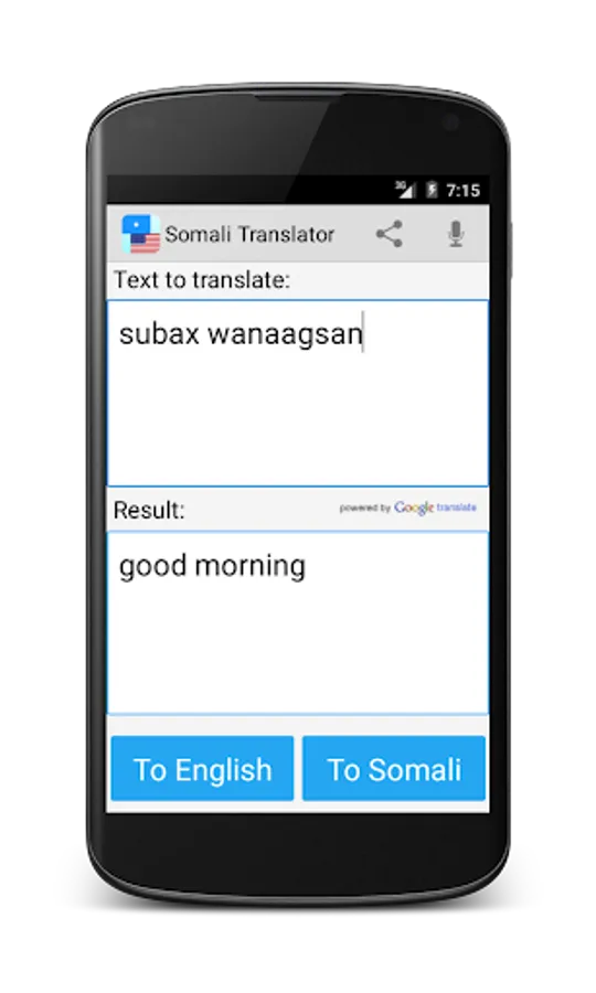 This free app is able to translate words and texts from english to somali, and from somali to english.