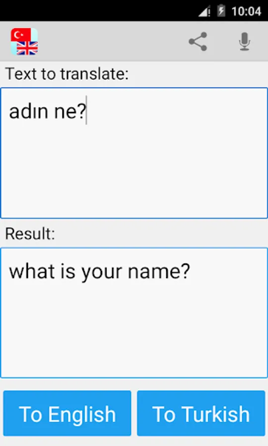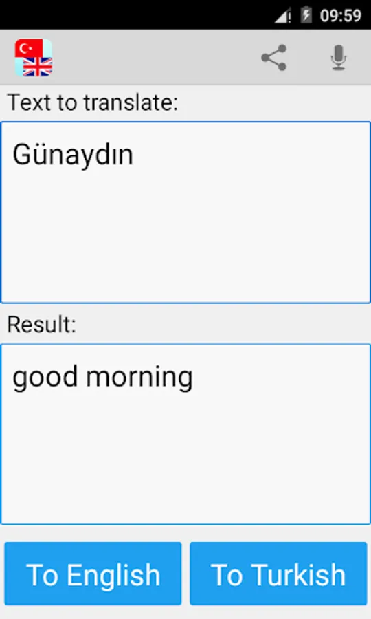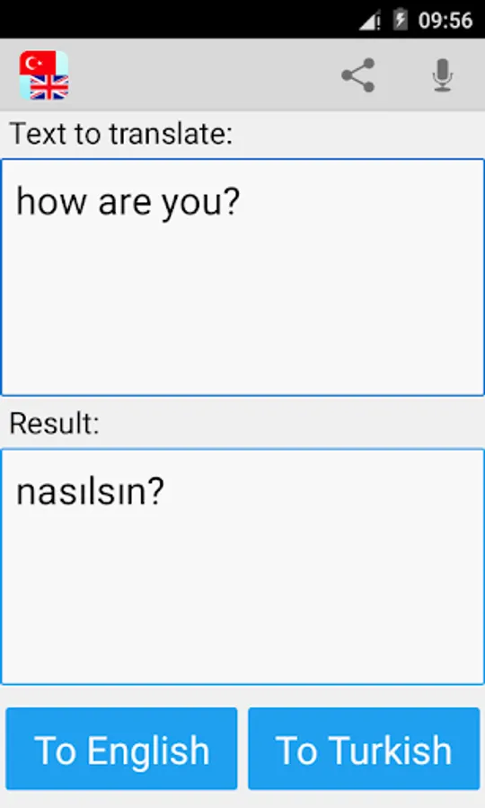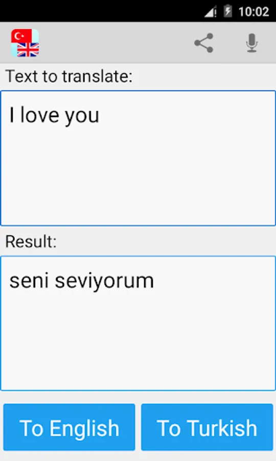 This free app is able to translate words and texts from english to turkish, and from turkish to english.