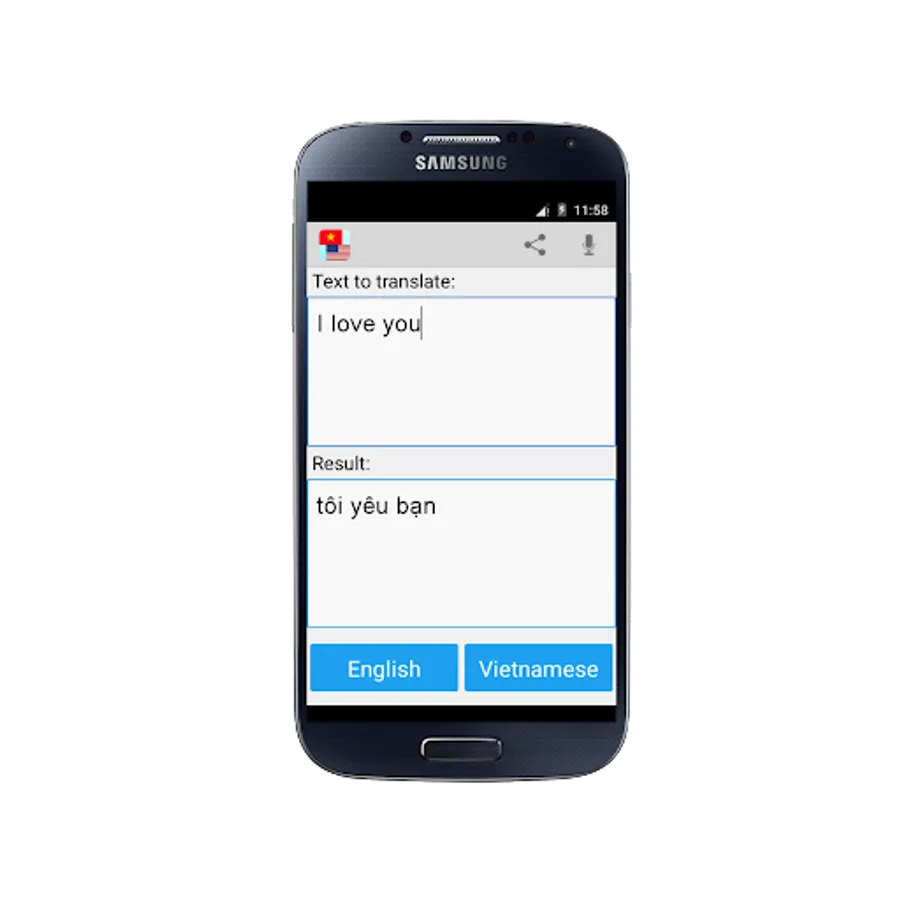 This free app is able to translate words and texts from english to vietnamese, and from vietnamese to english.