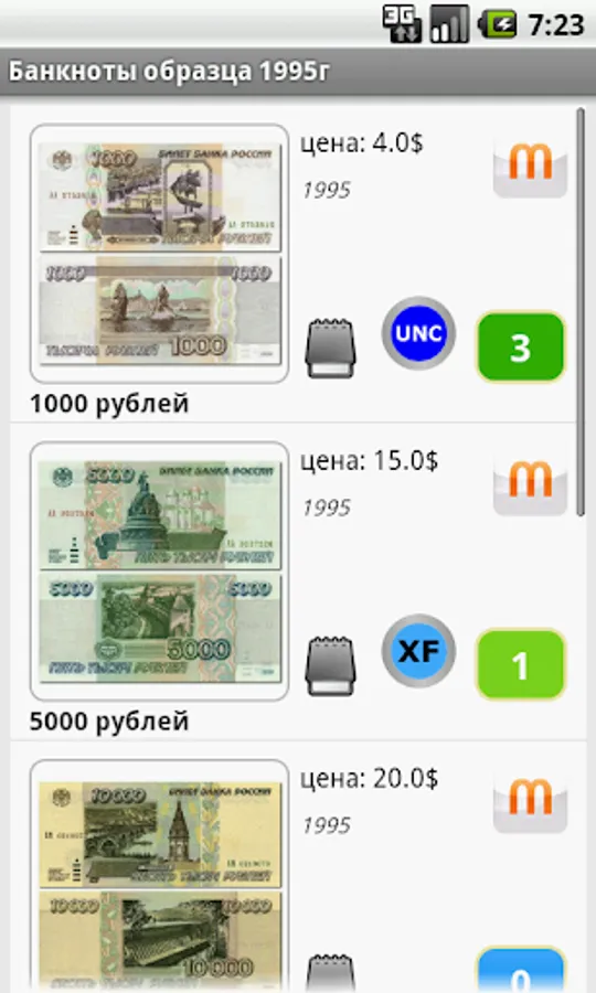 In the basic version for familiarization with the functional section is available only with banknotes of Russia with 1992 by.