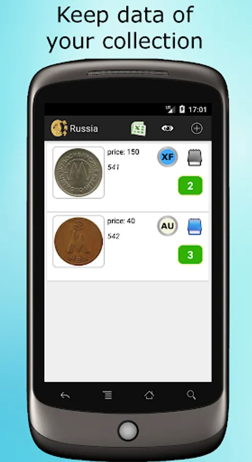 With this application, you can create any catalogs. Enter information about the subject of collecting, keep a record of the collection.
