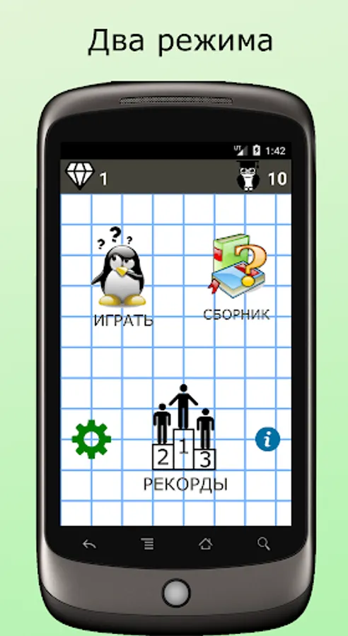 In the game mode, the answer is hidden and it is necessary to guess, every 40 minutes you can take a hint. For the correct answer is given by 1 chip, the number of owls is calculated from the complexity of the puzzle, a quantity of spent responses and prompt if was used. According to the game mode being a table of records of crystals and owls.