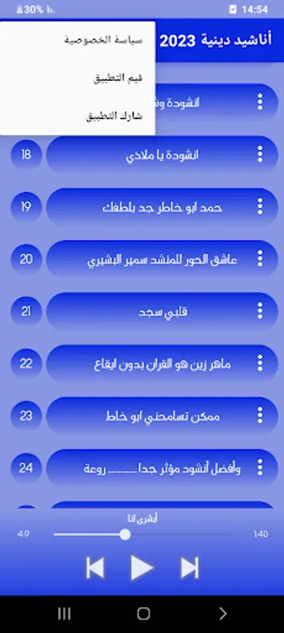 The application contains religious songs that are most listened to, most searched by people, and most used as well.