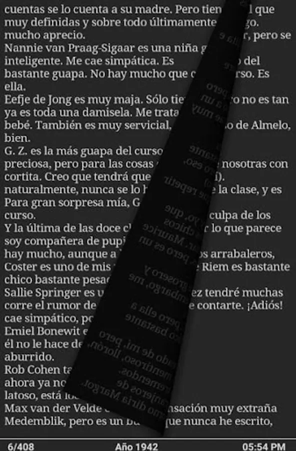 Hidden with his family, another Jewish family (the Van Daan) and a dentist (Dussel), in a garret of some warehouses in Amsterdam during the Nazi occupation of the Netherlands. Anne Frank, thirteen years old, tells in her diary, which she called "Kitty", the life of the group. Aided by several employees of the office, they remained for more than two years in the achterhuis (known as "the back house") until, finally, they were reported and arrested. Ana wrote a diary between June 12, 1942 and August 1, 1944. On August 4, 1944, neighbors (the names are unknown) betray the eight hidden in "the house behind"