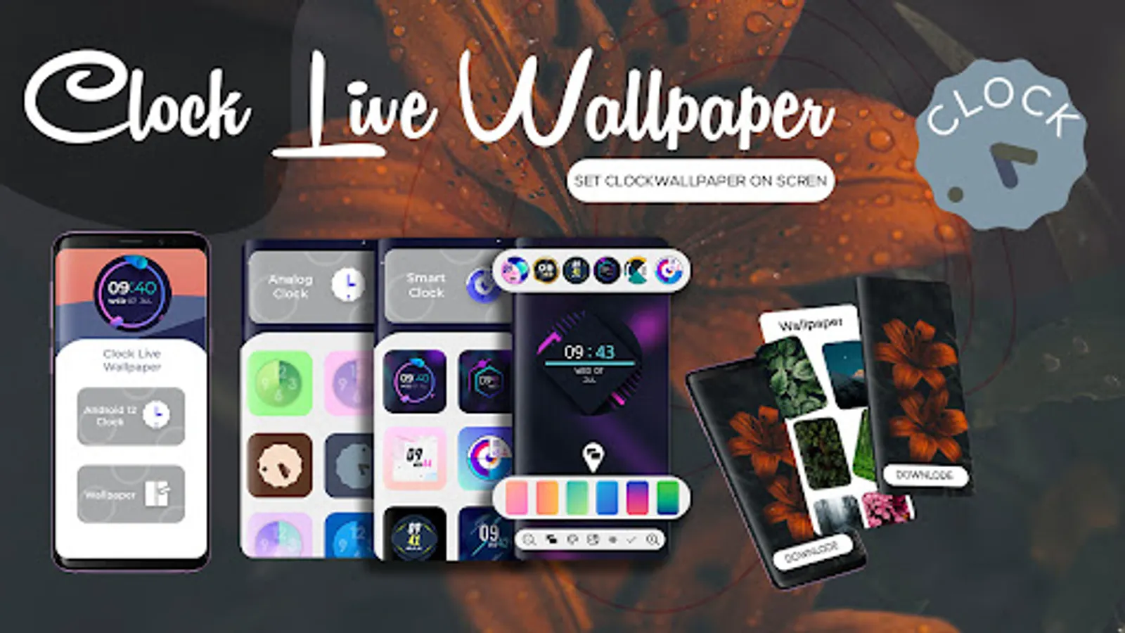 It provides Clock with the same style of Android Clock ones and it is a standalone app that doesn't need to any additional apps to set up live Wallpapers.