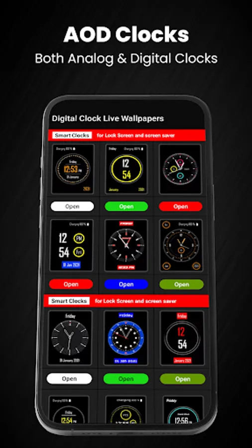 Beautiful & Smart Analogue, Digital Clocks on Mobile Screen as Live Wallpapers watch faces, clock backgrounds, and always-on-display clock wallpapers are all available in the smartwatch app. It offers stopwatch and alarm clock functions as well as watch wallpapers. Various clock wallpaper categories are available, each with its own design. smart digital clock wallpapers, and other watch themes. Here you will find live clock wallpapers, clock themes, clock screensavers.