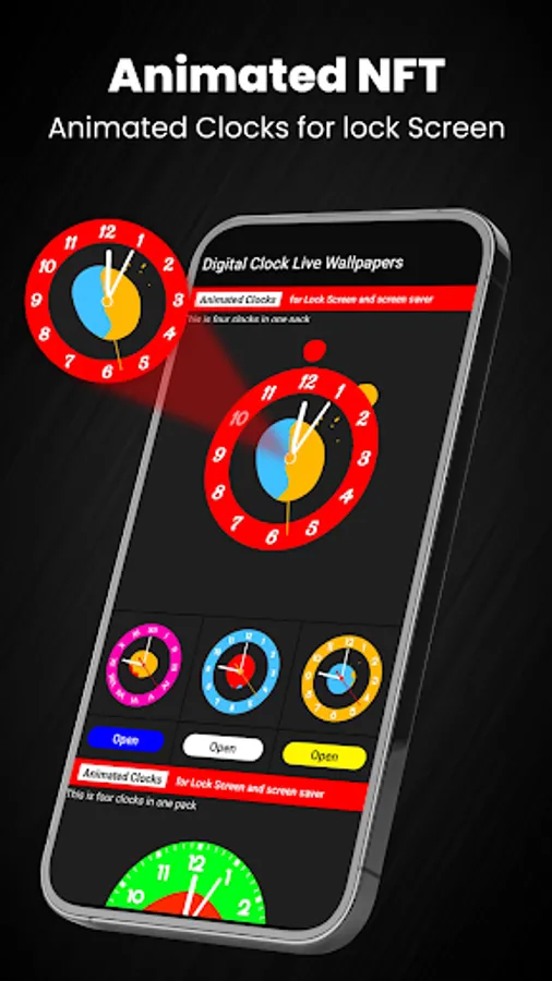 Animated Clocks NFT Night Clock wallpaper and Widget app. Live wallpaper, which saves the battery and show the time. Neon Digital Clock Live Wallpaper with custom settings. Smart Clock Animated Clocks App” is a great collection of beautiful smart and animated clocks. In this app, you will get many different animated, analog, digital, led, and neon, etc. clocks in attractive colors. “Animated Clocks App” allows you to choose a screen clock of your own choice. you can use all types of smart, premium clocks in a single touch. Animated analog clock widget with ticking second hand.