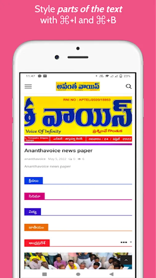 Anantha Voice is a leading Telugu News portal that provides it’s readers the complete picture of news that is relevant and presented in a insightful manner. The portal brings forward information as it takes place in the world. Anantha Voice Daily operates out of Hyderabad with network channels in All over India. It is the one-stop destination for trusted World, Indian and Telugu Regional . Innovative news coverage has made Anantha Voice Daily the most readable, credible and respected network in India. In South India, Anantha Voice Daily has been at the forefront of every revolution.