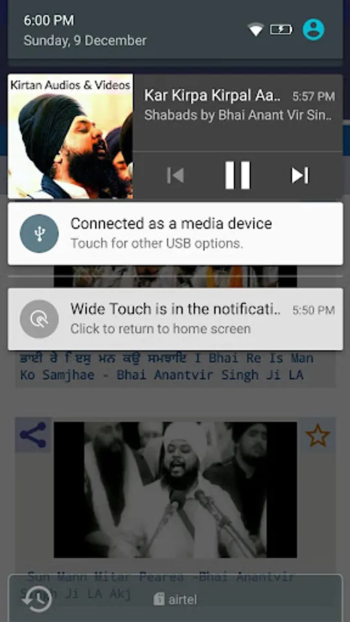App bundles Audio & Video Gurbani Keertan (AKJ _ Akhand Keertani Jatha) of Bhai Anantvir Singh Ji (from New York). His energetic voice makes the listener dwell into the Gurbani Rass.