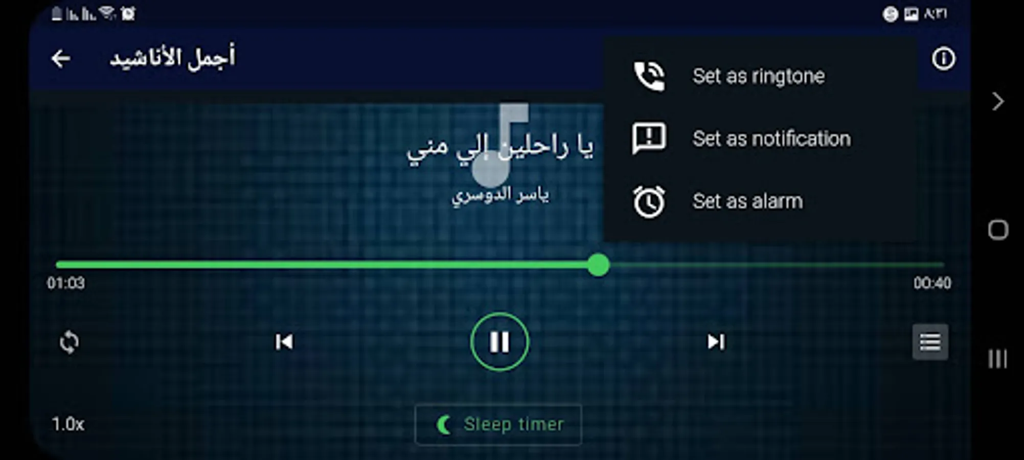 Islamic songs without the net and without music 2022 is an application that brings together a large number of the most beautiful Islamic religious songs that you will like, God willing, as we were keen to collect in it a number of the best voices for vocalists such as Meshary Al-Afasy, Nayef Al-Sharhan, Bassem Youssef, Abdullah Al-Mahdawi, Idris Abkar and Maher beautiful .
