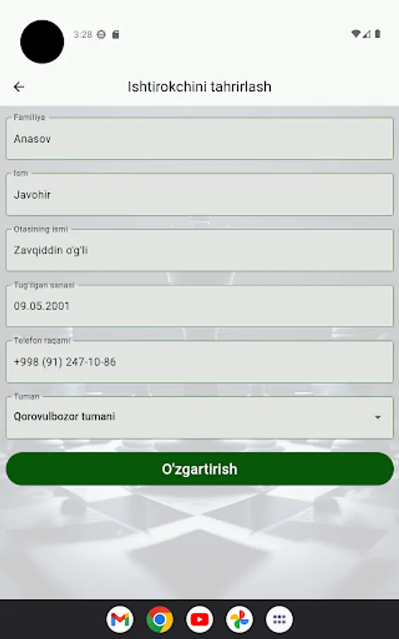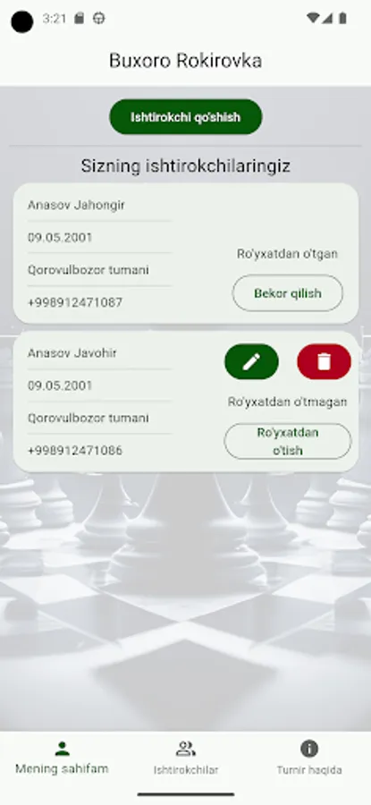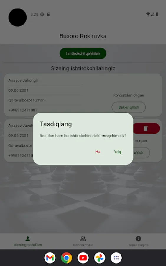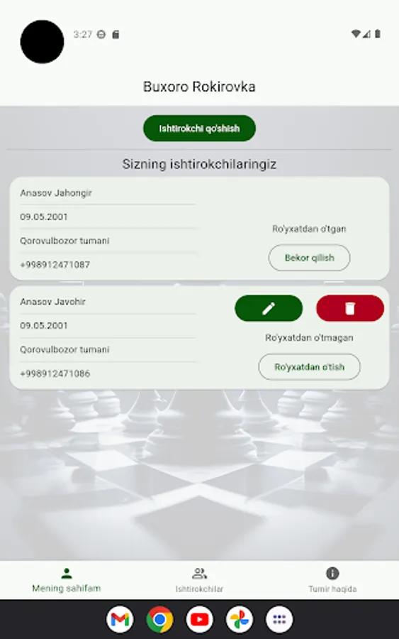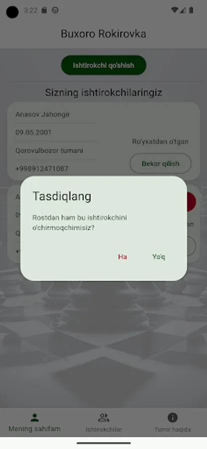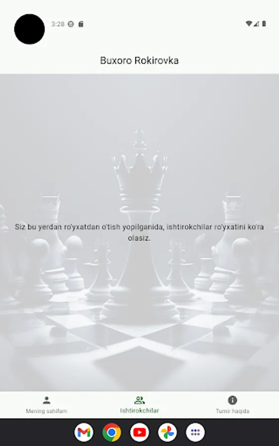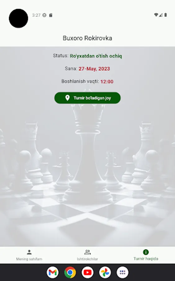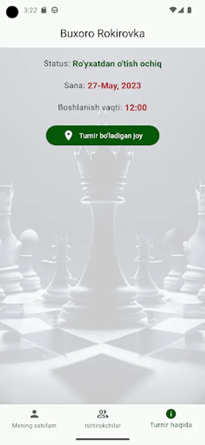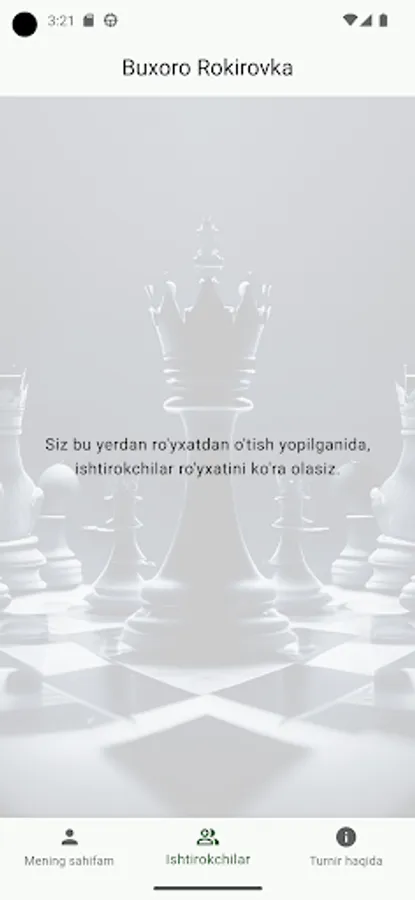 Har hafta bo'ladigan "Rokirovka" turniriga ro'yxatdan o'tish uchun mobil ilova