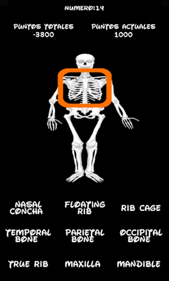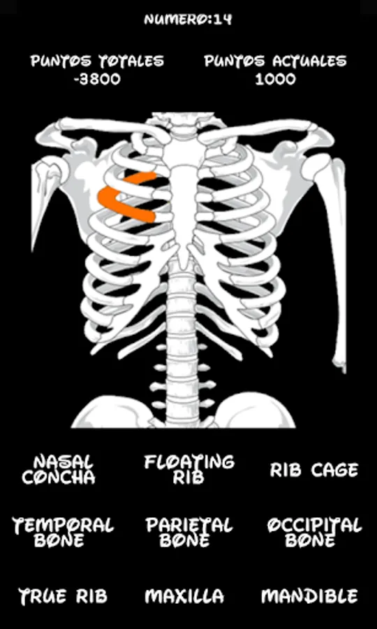 It also has a help screen where all the bones will appear with their corresponding names, so if you have a good memory, it will be easier to identify them, have fun and learn anatomy.