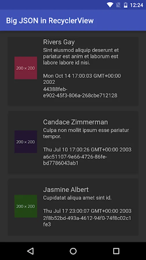 Source code available in GitHub: https://github.com/anaselhajjaji/android-samples/tree/master/JsonRecyclerView