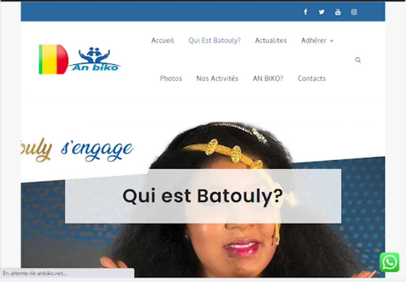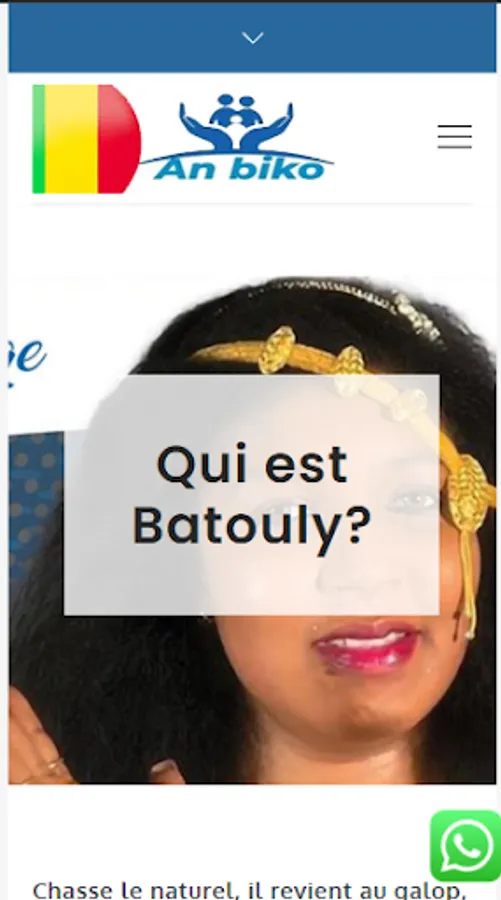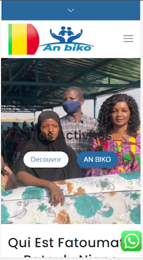 Application aimed at promoting the charitable activities of the ANBIKO association set up by Fatoumata Niane known as Batouly who donated her person to wipe the tears of the widow and the orphan, to help the youth who are in prey to lack of employment.