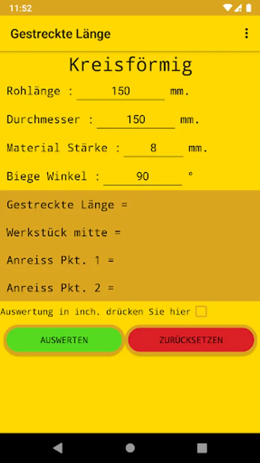 This application is for calculating the blank-o. Stretching length of a unprocessed workpiece.