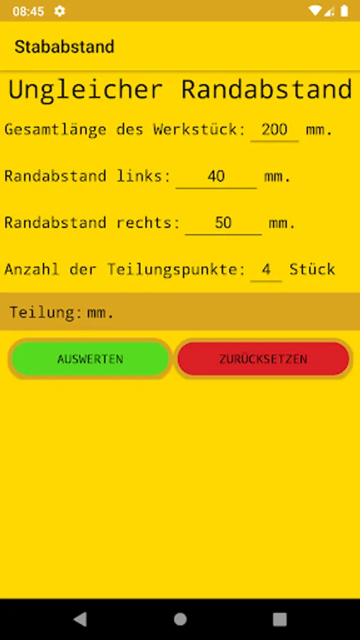 In the manufacture of workpieces is often faced with the task of having to calculate the dimensions for the division of lengths. This can e.g. be a workpiece to be machined, which should receive several holes, cutouts, etc.
