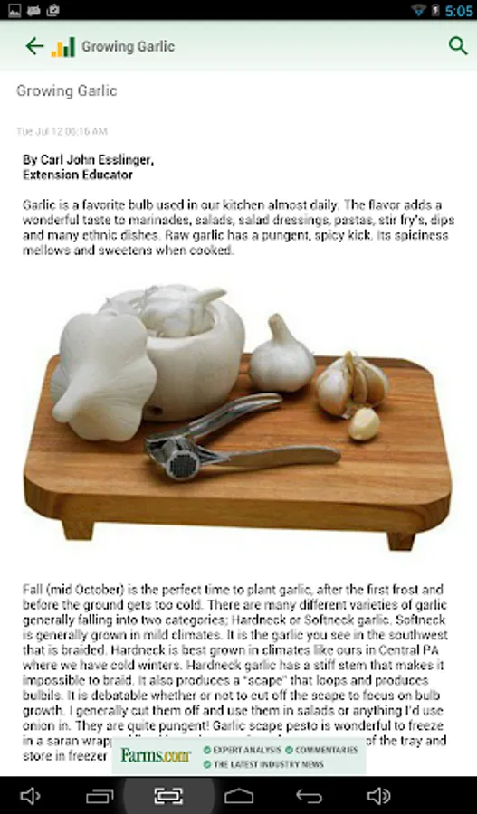 Get the latest agricultural commodity prices and farming news. The Farms.com Markets app provides up to date quotes, futures contracts, charts, and news on your mobile device. Some of the features include: