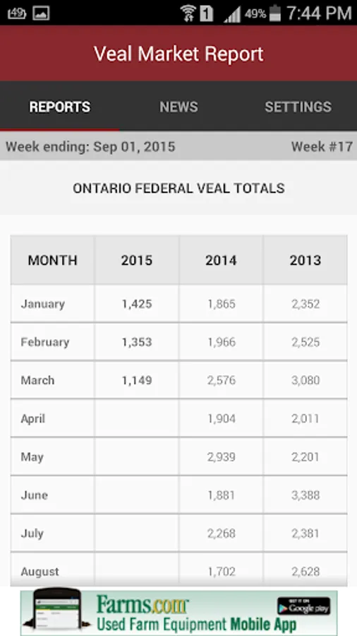The Veal Market Report app also features the Farms.com news feed, keeping agribusiness and producers well-informed wherever they are.