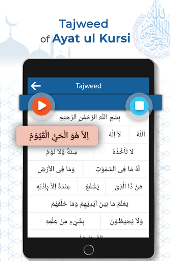 Download this free of charge and user-friendly Smartphone app of Ayatul Kursi so as to master your pronunciation of Ayatul Kursi besides benefiting from tremendous blessings of Allah SWT by listening and reciting in the proper way.