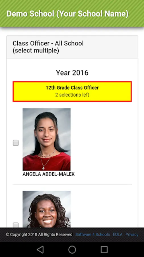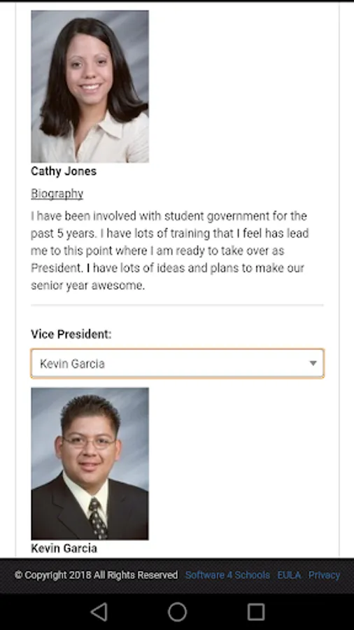 Description – Run your school student body elections online. In a few clicks you can create a school wide election with no need for paper ballots or Scantrons. Students can vote from home, school computer lab or, best of all, their smart phones! Results are instant and students are limited to only vote once per election. Schools can create unlimited elections, display student pictures, student biography and customize the look and feel to match the school site.