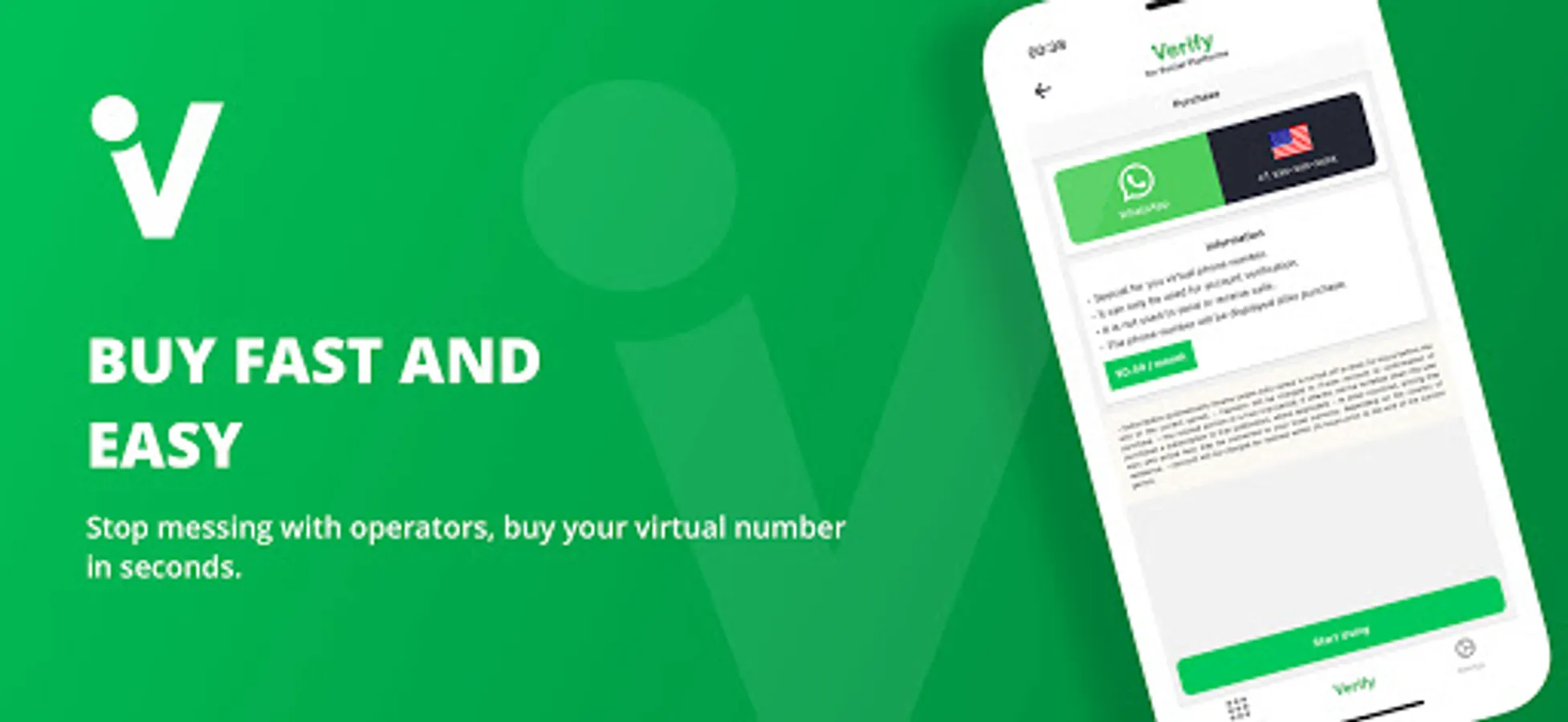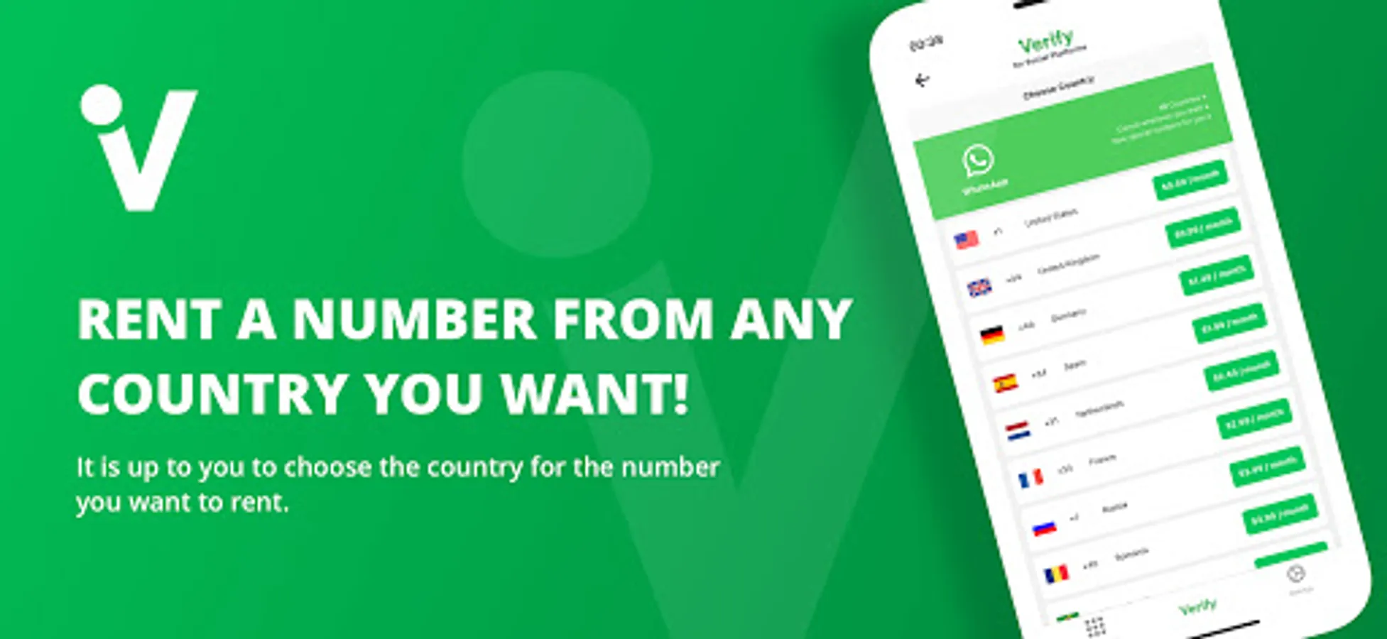 Throughout the period you want to use the application, you can rent your virtual number from any country you want, verify your account and stop using your virtual number by terminating your subscription any time you want.