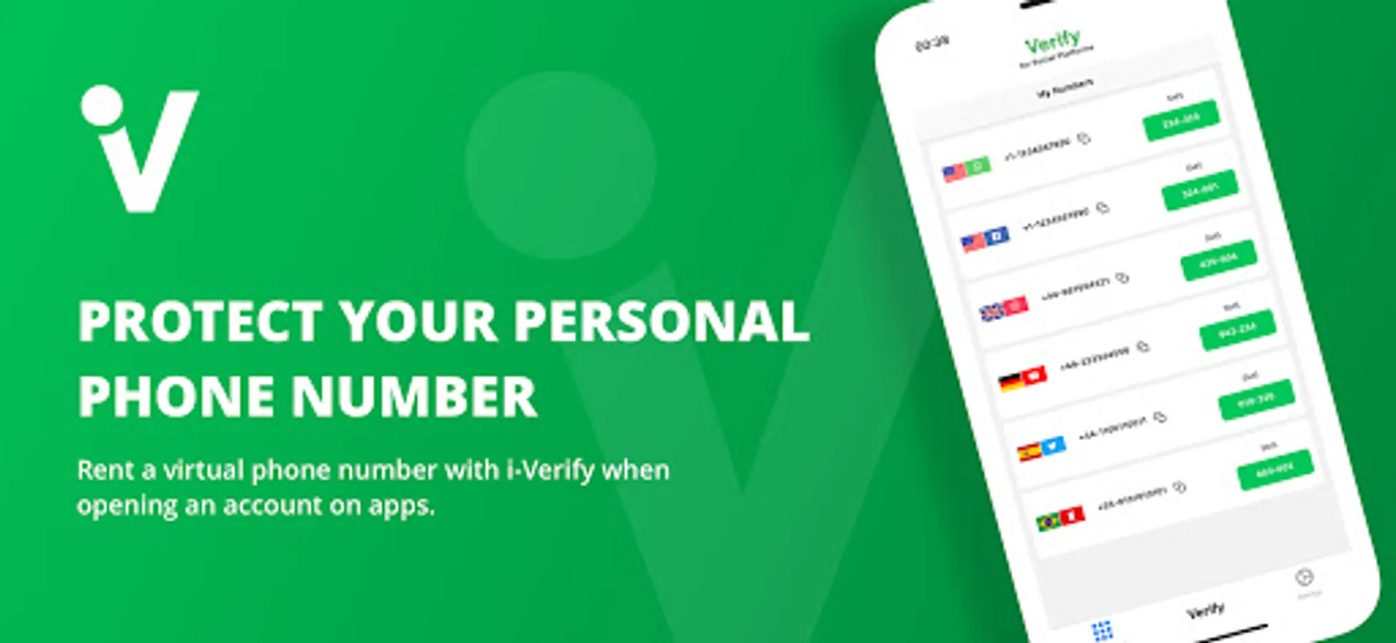 i-Verify provides a virtual phone number for your most frequently used apps.