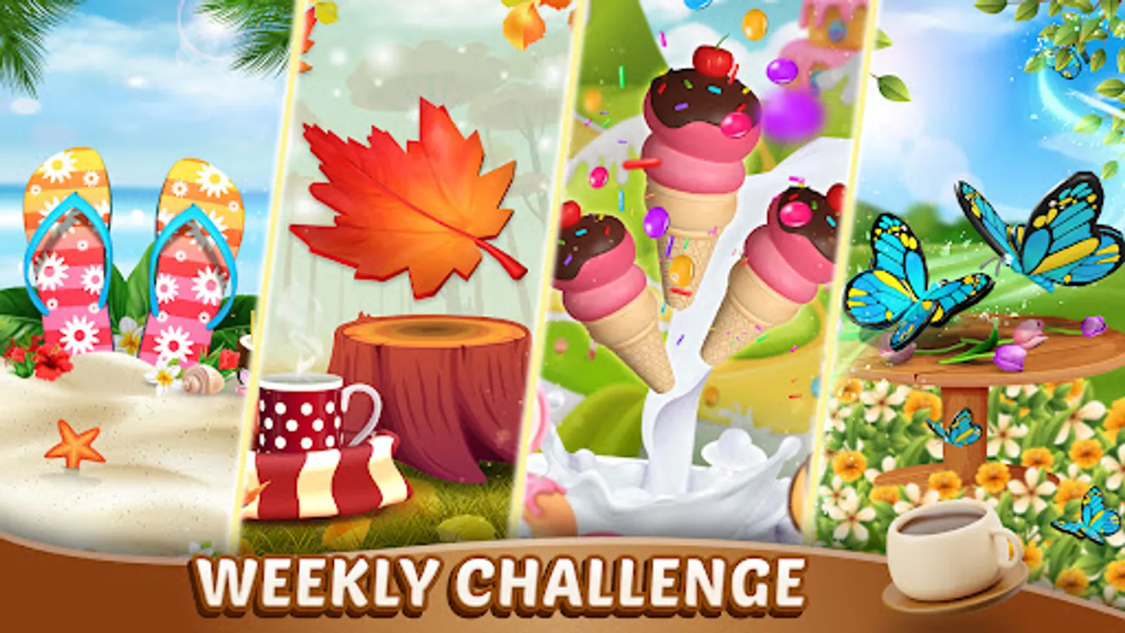 ✓ Keep sorting and matching objects until you clear all tiles from the screen