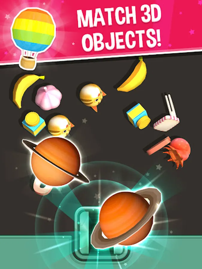You need to match 3D objects on the ground and pop them all ! When you clear a level, you will find new objects to pair.