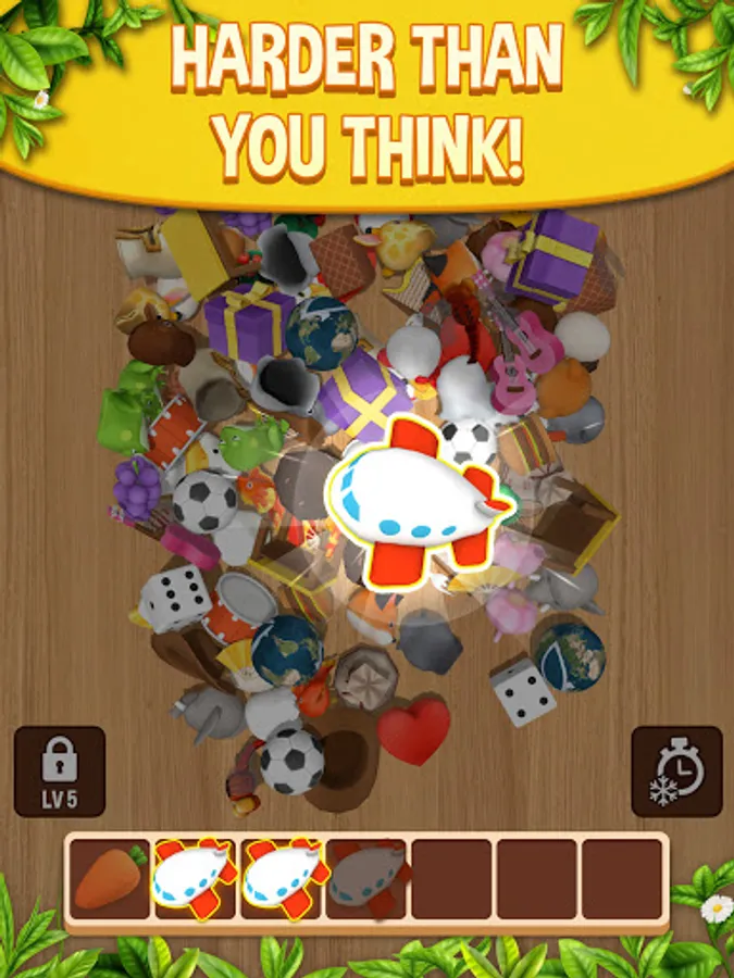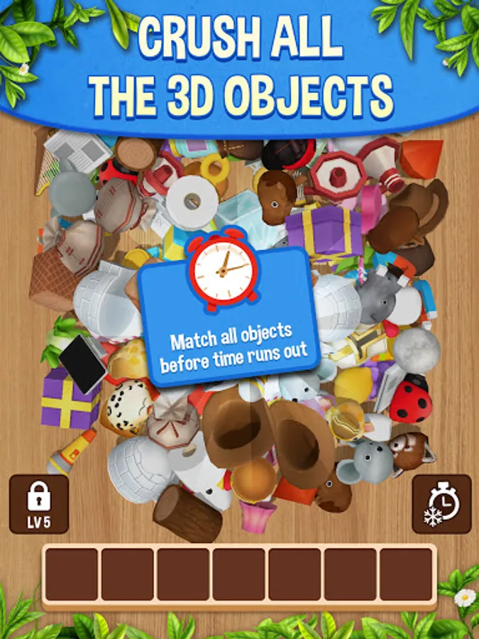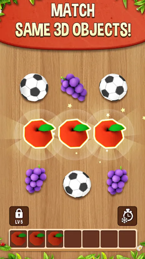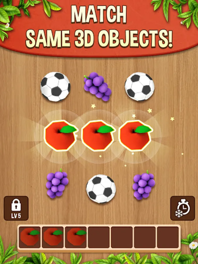 ◈ Just tap to place the 3D objects into the box. Three same objects will be collected. Collect all the objects as fast as possible.